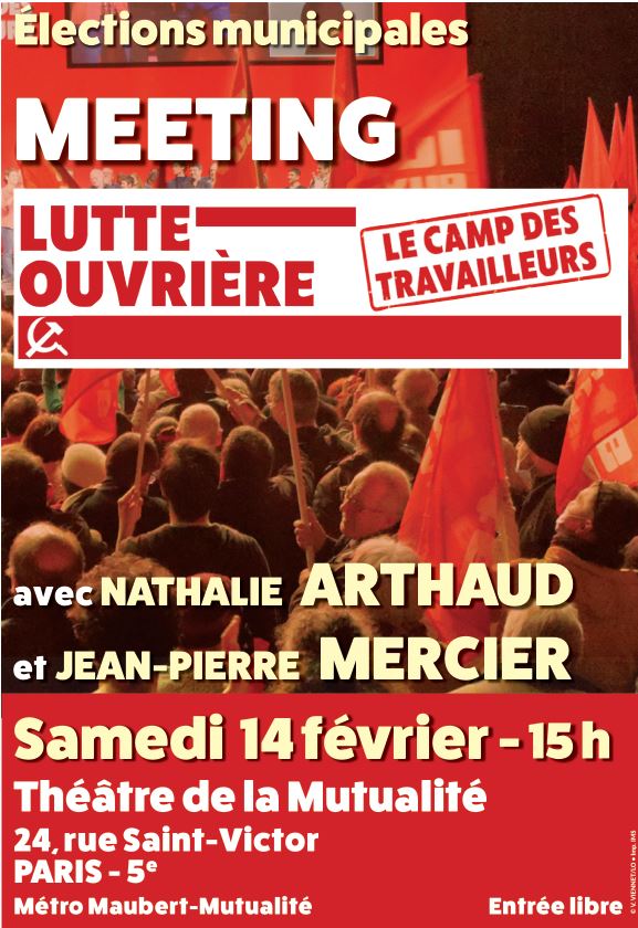 Meeting de Lutte ouvrière le samedi 14 février 2026 à 15h
